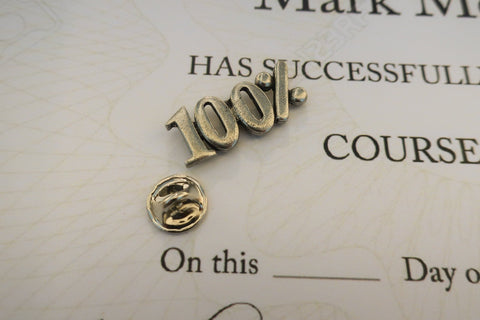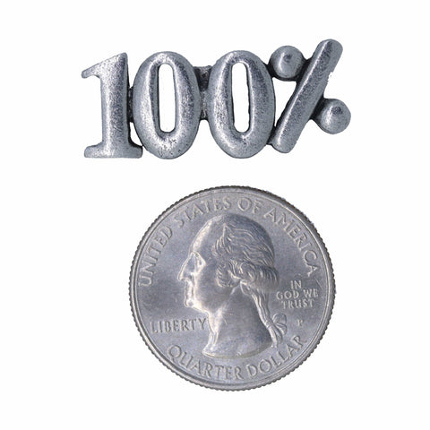 Recognize an individual who always gives it their all with our 100% pin. Hand cast in solid, lead-free pewter, all motivational pins have a US made, military style clasp backing that keeps your pin secure on a coat, hat, bag, or lanyard. Award team members, students, and employees, all inspirational pins arrive packaged on our signature presentation cards, making them ready for gift-giving!