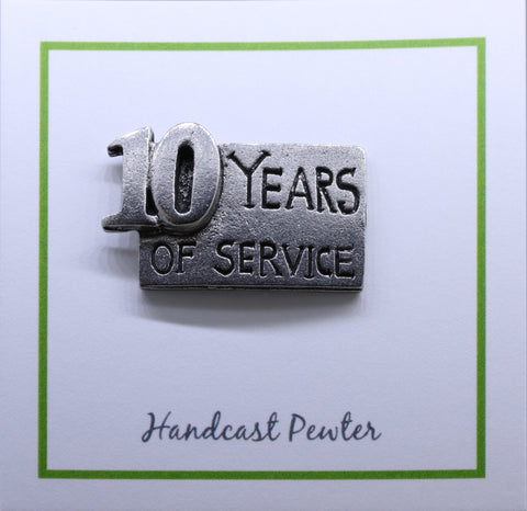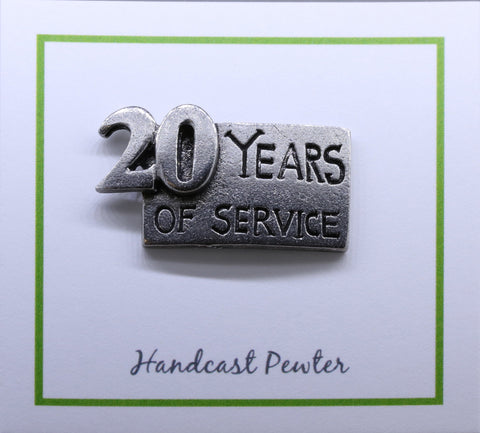 Recognize hard work and dedication with our years of service lapel pins.  Offered in 5-year increments, you can show each member of your team your appreciation for their commitment.  Hand cast in solid, lead-free Fine Pewter, each piece is an original three-dimensional sculpture signed by the artist, Jim Clift.  Each of our hand cast pewter pins is handcrafted in our studio in Coventry, Rhode Island. Individually packaged on our signature presentation cards, our pins arrive ready for gift giving!