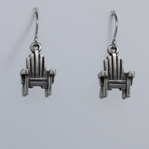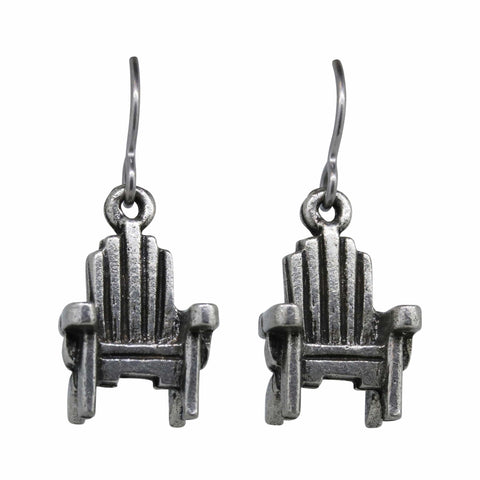 Our Adirondack chair earrings are hand cast in solid, lead-free pewter. They have stainless steel ear wires that are very corrosion resistant, clean, hypoallergenic and sturdy (also with a sleek, shimmering finish that won’t rust or tarnish). The chair dangles arrive packaged on our signature presentation card, nestled inside a beautiful gift box, making them ready for gift-giving! A great accessory for campfires and vacations.