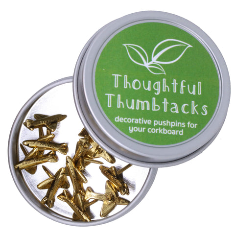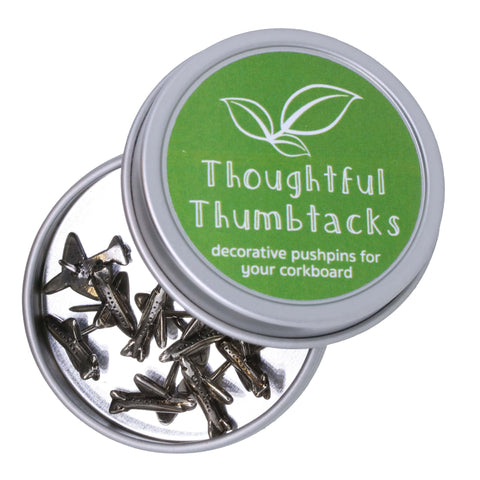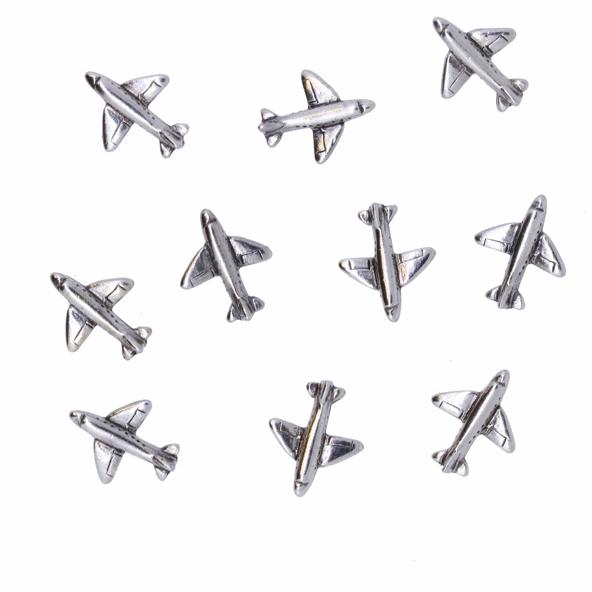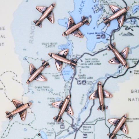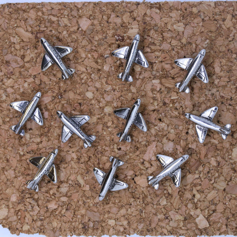 Take off for exotic locations with our airplane pewter pushpins. These miniature three-dimensional sculptures are perfect for posting notes, lists or reminders of far-off places. Set of 10.