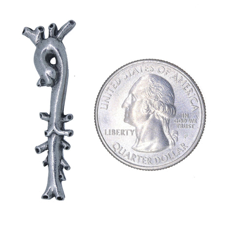Nurses, Doctors, Med students, and Cardiology specialists will all appreciate the attention to detail and uniqueness of our aorta lapel pin. Hand cast in solid, lead-free Fine Pewter, each piece is an original three-dimensional sculpture signed by the artist, Jim Clift. Our Aortic pins come individually packaged on our signature presentation cards. Increase awareness of heart disease and cardiovascular disease by wearing our unique pins. Enhance your heart disease events with these heart pins, great for donors and participants. These aorta artery pins are also a great way for showing appreciation for colleagues, students, and staff.