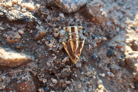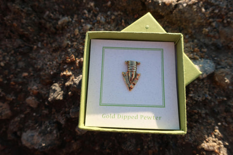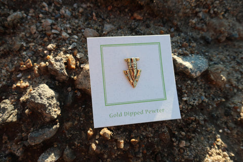 Native Americans used the arrowhead as more than just a weapon. As a talisman, the arrowhead was worn around the neck to ward off the Evil Eye. It symbolized courage, strength, and protection. Native Americans believed the arrowhead could deflect negative energy and allow the wearer to absorb their enemy’s power. Our arrowhead pin is hand cast in solid, lead-free pewter and then dipped in 22K gold. All our arrow pins arrive packaged on our signature presentation card, making them ready for gift-giving!