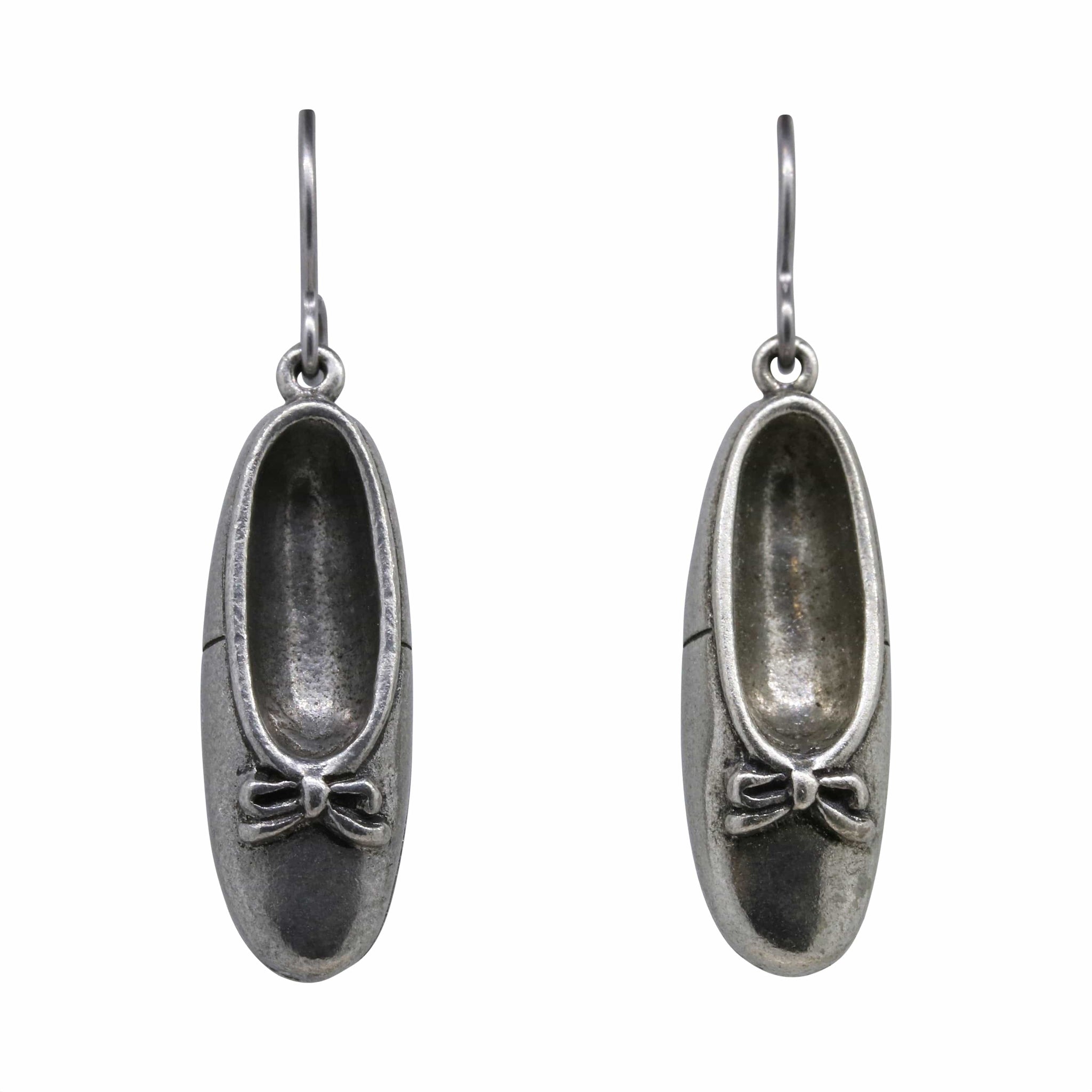 Our ballet slipper earrings are hand cast in solid, lead-free pewter. They have stainless steel ear wires that are very corrosion resistant, clean, hypoallergenic and sturdy (also with a sleek, shimmering finish that won’t rust or tarnish). The ballet dangles arrive packaged on our signature presentation card, nestled inside a beautiful gift box, making them ready for gift-giving! A great accessory for ballet recitals, dancers, and performing art entertainers.