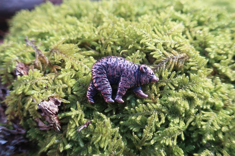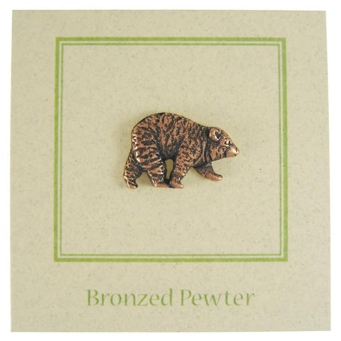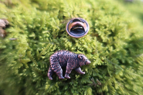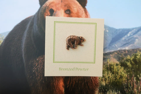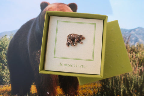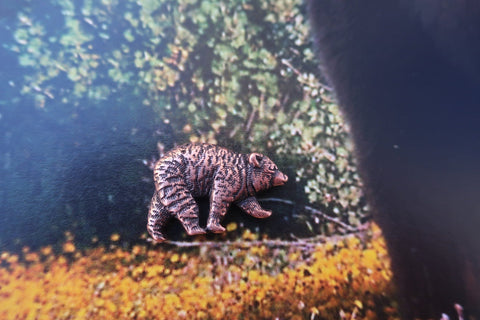 Our bear pins are perfect for wildlife enthusiasts and outdoorsmen. Our bear pins have a military clasp back that is made in the US, so your pin stays secure. Our bear pins are hand cast in solid, lead free pewter and then dipped in copper. They make an excellent groomsmen gift, and a dapper addition to a sports coat, lanyard, backpack, or coat. All our animal pins arrive packaged on our signature presentation card, making them ready for gift-giving! Want to add a personal touch? Our custom card option allows you to design the front of the card to include a logo, information about your event, or a special message.
