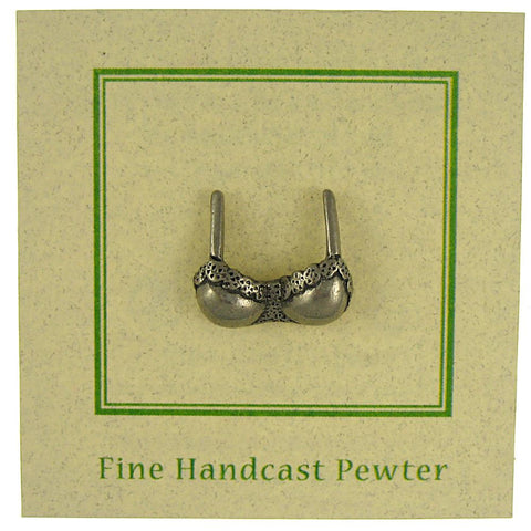 Raise awareness for Breast Cancer with our bra lapel pin.  Hand cast in solid, lead-free Fine Pewter, each piece is an original three-dimensional sculpture signed by the artist, Jim Clift. Each of our hand cast pewter pins is handcrafted in our studio in Coventry, Rhode Island. Individually packaged on our signature presentation cards, our pins arrive ready for gift giving!