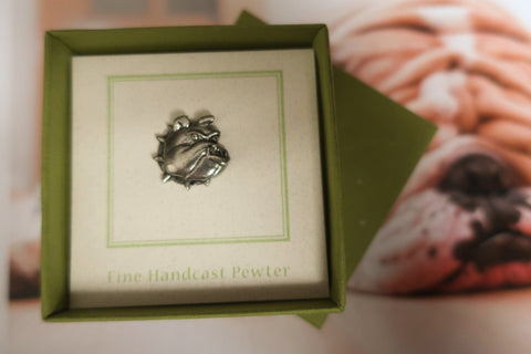 The Bulldog has long been the national symbol of England. During World War II much was made of the similarities between the jowly, tenacious Bulldog and the jowly, tenacious Prime Minister Winston Churchill. Our bulldog pin is hand cast in solid, lead free pewter. The dog pins arrive packaged on our signature presentation card, making them ready for gift-giving! As the bulldog is the mascot for many sporting teams, our custom card option would make a nice addition where you can include a logo, school emblem, information about your event, or a special message on the front of the card.