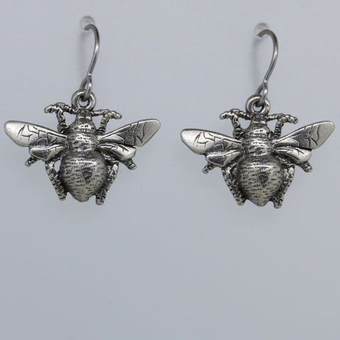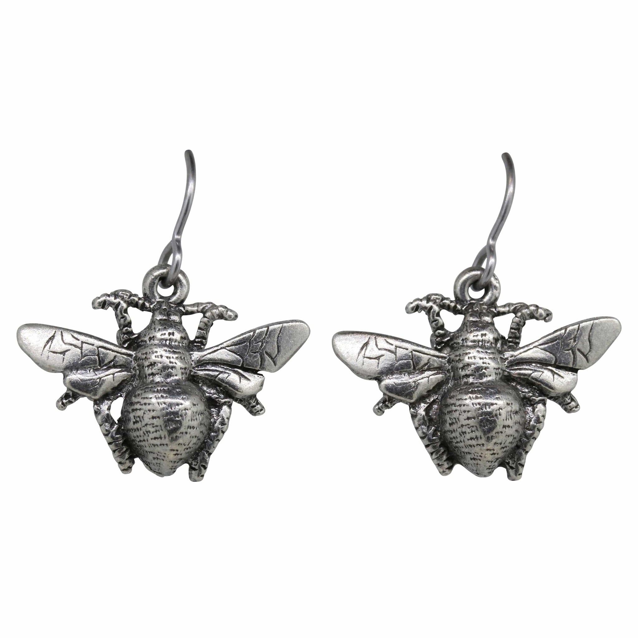 Our bumble bee earrings are hand cast in solid, lead-free pewter. They have stainless steel ear wires that are very corrosion resistant, clean, hypoallergenic and sturdy (also with a sleek, shimmering finish that won’t rust or tarnish). The bee dangles arrive packaged on our signature presentation card, nestled inside a beautiful gift box, making them ready for gift-giving!