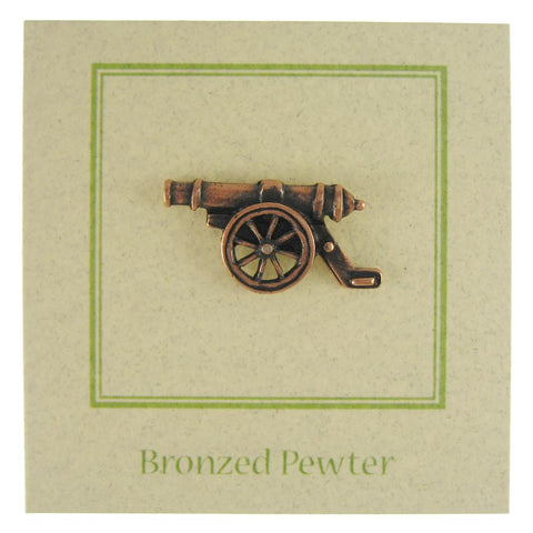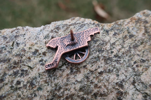 Wear a piece of history with our cannon lapel pin. Our artillery and war weapon pins are hand cast in solid, lead free pewter and then dipped in copper. Our cannon pins arrive packaged on our signature presentation card, making them ready for gift-giving! History enthusiasts, civil war reenactment fans, and antique collectors all appreciate the attention to detail of our cannon pins.