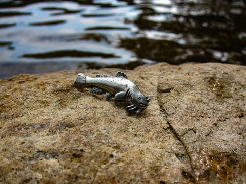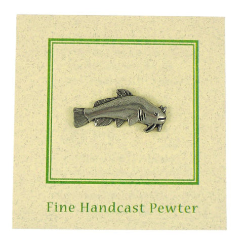 Celebrate that great catch with our hand cast pewter pins. Fishing enthusiasts can appreciate the unique designs, the careful craftsmanship, and the amazing attention to detail that characterizes Jim's work. Each of our catfish pins is handcrafted in our studio in Coventry, Rhode Island. Whether fishing in a lake, pond, or stream, stocked, or in the wild, our fish pins have great detail and will look sharp on a suit jacket, hat, or backpack. Individually packaged on our signature presentation cards, our pins arrive ready for gift- giving! We are happy to include a gift message to your favorite fisherman.
