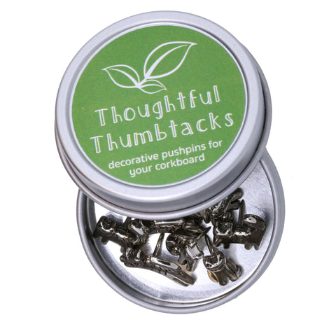 For the cat lover! Be reminded of your furry friends with our hand cast pewter pushpins in your choice of a gold or silver finish. These miniature three-dimensional sculptures are perfect for posting notes, lists or pictures.  Set of 10 arrive packaged in an attractive gift tin.