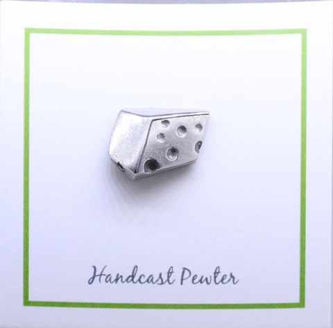 Our cheese lapel pin is hand cast in solid, lead-free pewter. Show your love for anything cheesy by wearing our Swiss cheese lapel pin on a hat, lanyard, or jacket. The American made military clasp backing will keep your pin secure. Gifting to a cheese lover? All of our cheese lapel pins arrive packaged on our signature presentation card, making them ready for gift-giving.