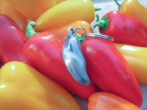 Add some flair or personalization to your set of keys with our hand cast pewter chili pepper key chain.  Our hot tamales hang beautifully from a ring.  The perfect gift or accessory for culinary enthusiasts to tell their story.