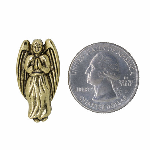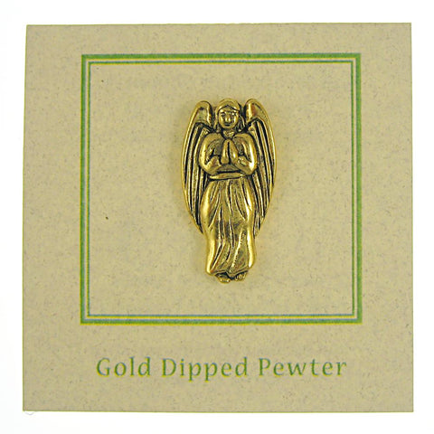 Remember an Angel gaining their wings with our hand cast pewter, gold dipped angel lapel pin.  Recognize individuals for their guidance and support, for being an angel during a difficult time.  Paired with a custom card with your message, our angel pin makes a beautiful remembrance tribute and a treasured addition to a prayer card.