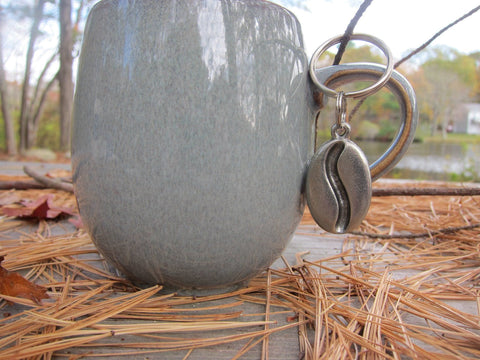 Add some flair or personalization to your set of keys with our hand cast pewter coffee bean key chain. Our coffee keyring hangs beautifully from a ring. The perfect gift or accessory for the coffee addict to tell their story.