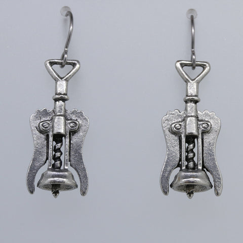 Our corkscrew earrings are hand cast in solid, lead-free pewter. They have stainless steel ear wires that are very corrosion resistant, clean, hypoallergenic and sturdy (also with a sleek, shimmering finish that won’t rust or tarnish). The wine dangles arrive packaged on our signature presentation card, nestled inside a beautiful gift box, making them ready for gift-giving!