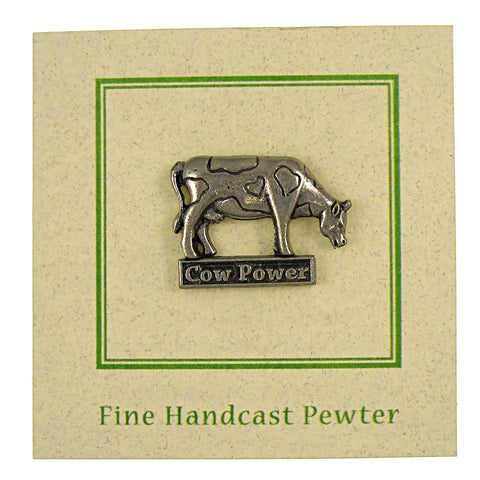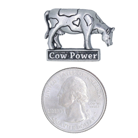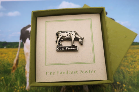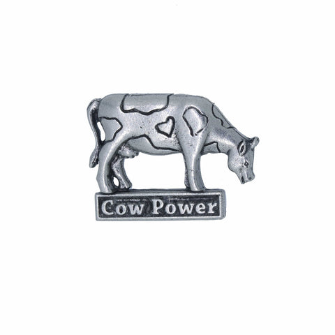 Cow power, the ability to produce clean energy from cow manure by converting it to biomethane, which also reduces greenhouse gases. Support clean energy with our cow power pin. Hand cast in solid, lead free pewter, our cow pins arrive packaged on our signature presentation cards, making them ready for gift-giving! Since June of 2004, 100% of the electricity we have used in the production, packaging, and marketing of our products has been produced by renewable resources located within New England. Your purchase helps to develop a combination of solar, wind, and small hydroelectric generation sources that offer a cleaner future and a sustainable industry!