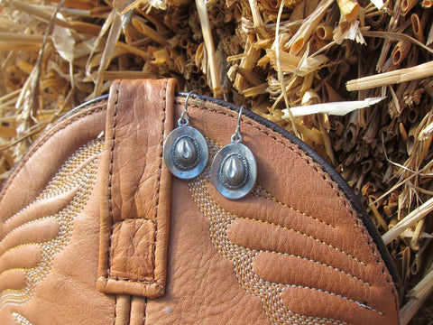 Our cowboy hat earrings are hand cast in solid, lead-free pewter. They have stainless steel ear wires that are very corrosion resistant, clean, hypoallergenic and sturdy (also with a sleek, shimmering finish that won’t rust or tarnish). The rodeo dangles arrive packaged on our signature presentation card, nestled inside a beautiful gift box, making them ready for gift-giving!