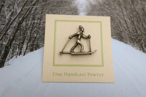 The 6 most decorated Winter Olympic athletes of all time are all cross-country skiers. Celebrate the sport with our cross-country skiing pin, which is hand cast in solid, lead-free pewter. Our skiing pins have a US made, military style clasp back that will keep your pin secure on a coat, scarf, bag, or lanyard. Our ski pins arrive packaged on our signature presentation cards, making them ready for gift-giving!
