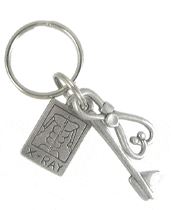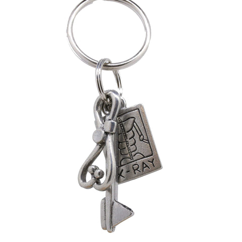 Add some flair or personalization to your set of keys with our hand cast pewter doctor key chain. Our medical keyring has three separate charms, a stethoscope, reflex hammer, and X-ray hanging beautifully from a ring. The perfect gift or accessory for doctors and medical professionals.