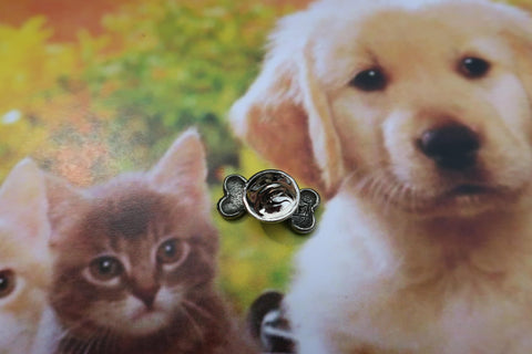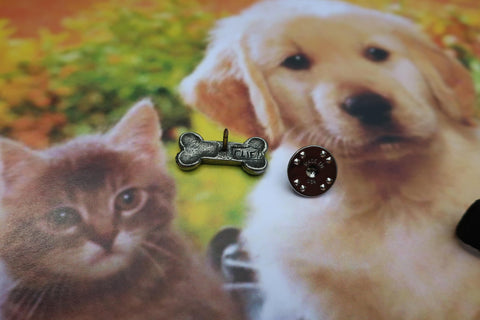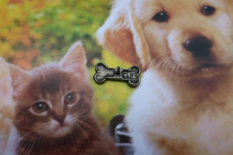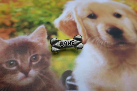 Show you love your pet with our dog bone pin. Hand cast in solid, lead-free pewter, our canine pins have a US made, military style clasp back to keep your pin secure on a leash, coat, hat, or bag. Our animal rescue pins arrive packaged on our signature presentation cards, making them ready for gift-giving! Hosting an animal shelter fundraiser, gifting to veterinarian clients, or using for a pet food drive? Our custom card option allows you to design the front of the card to include a logo, information about your event, or a special message.