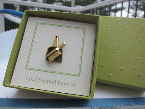 Dustpan and Brush Gold Lapel Pin