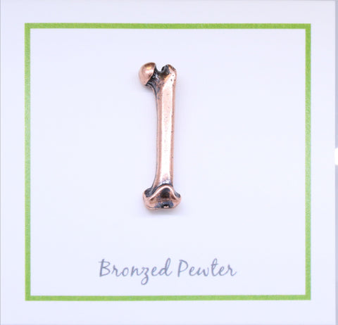 The femur bone is both the longest and the strongest bone in the human body, extending from the hip to the knee. Our femur bone pin is hand cast in solid, lead-free pewter and then dipped in copper. Orthopedic specialists love wearing this bone pin on their white coats, lanyard, or lapel. All of our ortho pins arrive packaged on our signature presentation card, making them ready for gift-giving! Hosting a convention, thanking hospital staff, or graduating from medical school? Our custom card option allows you to design the front of the card to include a logo, information about your event, or a special message.