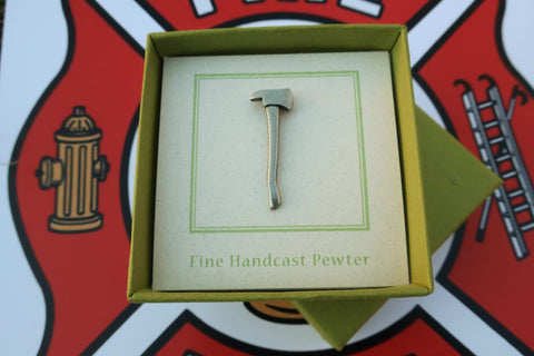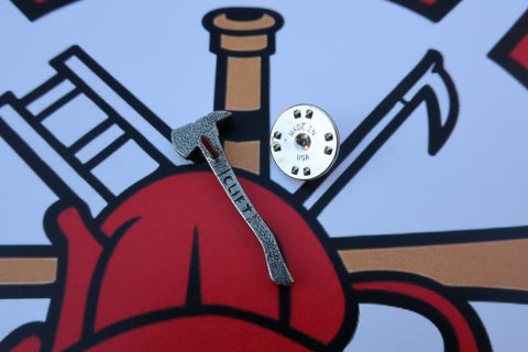 Our firefighter axe pins are hand cast in solid, lead free pewter. All of our first responder pins have a US made, military style clasp backing that keeps your rescue pins secure on a coat, hat, bag, or lanyard. Award our fire fighter pins to heroes going above and beyond; all of our firefighting pins arrive packaged on our signature presentation card, making them ready for gift-giving!