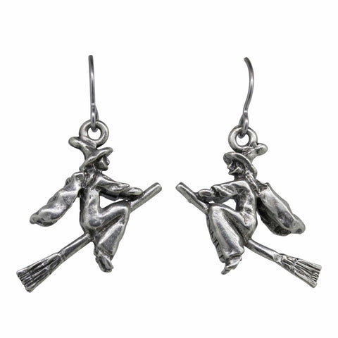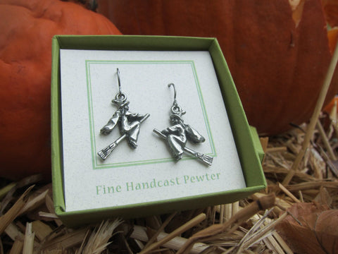Our flying witch earrings are hand cast in solid, lead-free pewter. They have stainless steel ear wires that are very corrosion resistant, clean, hypoallergenic and sturdy (also with a sleek, shimmering finish that won’t rust or tarnish). The Halloween dangles arrive packaged on our signature presentation card, nestled inside a beautiful gift box, making them ready for gift-giving! A great accessory for Halloween parties, October, and spooky occasions.