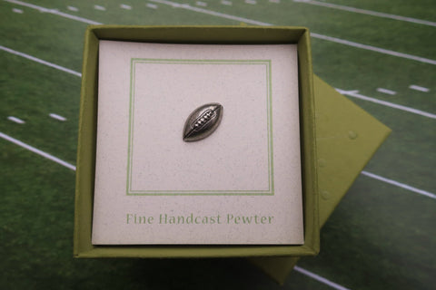 Show your love for the game with our football pin. Our football pins are hand cast in solid, lead free pewter. All of our sport pins arrive packaged on our signature presentation card, making them ready for gift-giving! Hosting game night, celebrating youth football leagues, or using for a sport fundraiser? Our custom card option allows you to design the front of the card to include a logo, information about your event, or a special message.