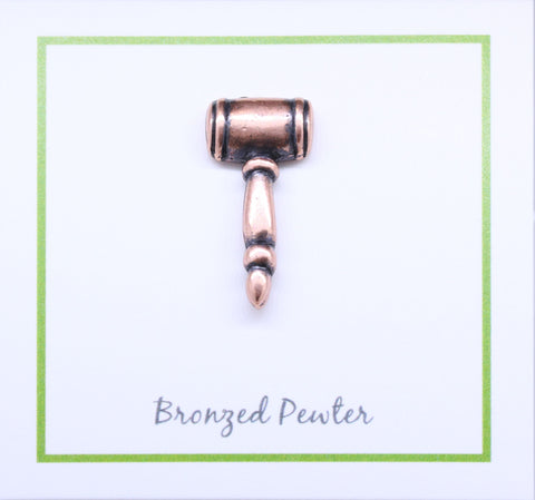 The gavel is a symbol of the authority and right to act officially in the capacity of a presiding officer. Show rank with our gavel pin. Hand cast in solid, lead-free pewter and then dipped in copper, our law pins have a US made, military style clasp back to keep your pin secure on a robe, coat, hat, or lanyard. Our judge pins arrive packaged on our signature presentation cards, making them ready for gift-giving!