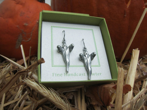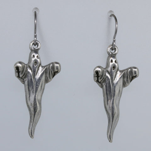 Our ghost earrings are hand cast in solid, lead-free pewter. They have stainless steel ear wires that are very corrosion resistant, clean, hypoallergenic and sturdy (also with a sleek, shimmering finish that won’t rust or tarnish). The Halloween dangles arrive packaged on our signature presentation card, nestled inside a beautiful gift box, making them ready for gift-giving! A great accessory for Halloween parties, October, and spooky occasions.