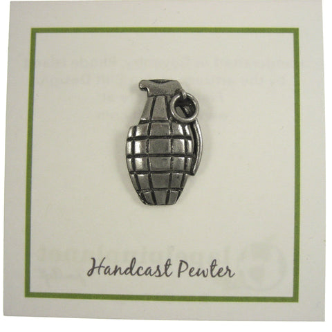 Our grenade pins are the bomb!  Hand cast in solid, lead-free pewter, our firecracker pins have a US made, military style clasp back to keep your pin secure on a uniform, coat, or lanyard.  Our military pins arrive packaged on our signature presentation cards, making them ready for gift-giving!