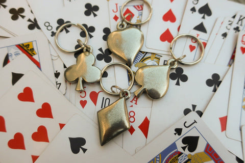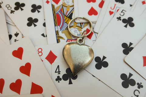 Add some flair or personalization to your set of keys with our hand cast pewter heart key chain. Our card suit keyrings hang beautifully from a ring. The perfect gift or accessory for poker and card players.