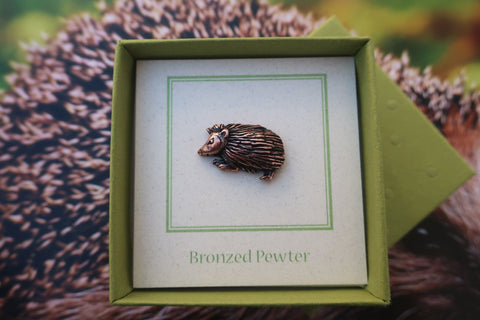 To have a hedgehog as a totem animal means that you are gentle, confident, kind, wise, motherly and relaxed. Tell your story with our hand cast pewter, copper dipped hedgehog pin. All of our animal pins arrive packaged on our signature presentation card, making them ready for gift-giving! Hosting an event, charity, or fundraiser? Our custom card allows you to design the front of the card to include a logo, information about your event, or a special message.