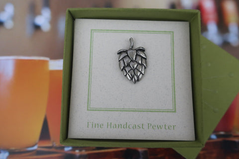 Show your support for breweries with our hop pins. Hand cast in solid, lead-free pewter, our craft beer pins have a US made, military-style clasp backing that keeps your pin secure on a coat, hat, bag, or lanyard. Gift to your favorite brewer, our hops pins arrive packaged on our signature presentation card, making them ready for gift-giving! Spread the news about your next brew, our custom card option allows you to design the front of the card to include a logo, information about your brewery, or a special message.