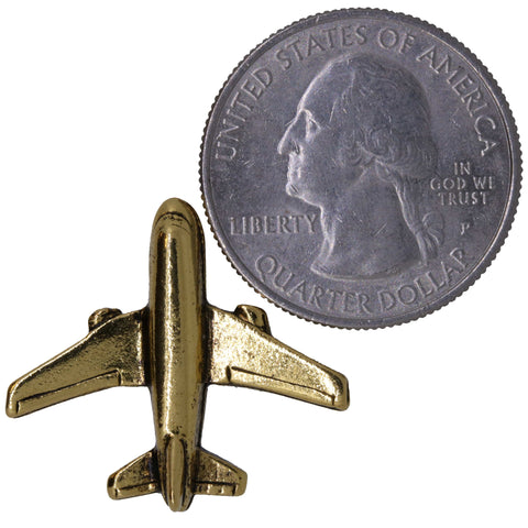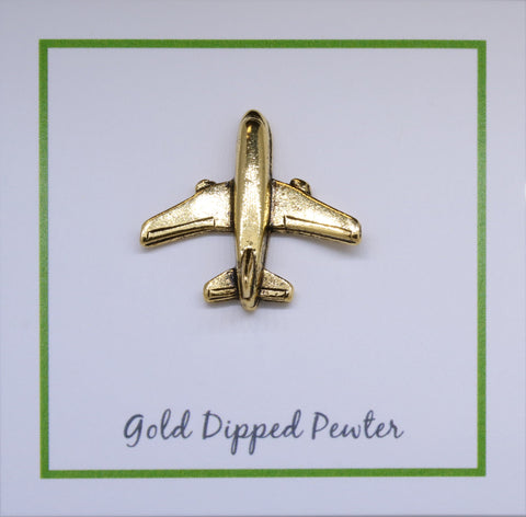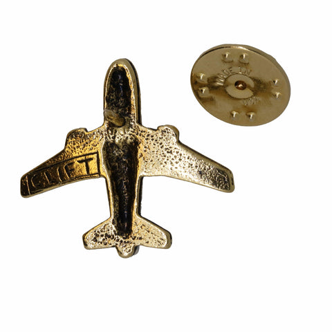 Display your love for aviation with our jet airplane pin. Hand cast in solid, lead-free pewter and then dipped in 22K gold, our pilot pins have a US made, military style clasp back to keep your pin secure on a coat, hat, or bag. Our jet pins arrive packaged on our signature presentation card, making them ready for gift-giving! Celebrating a group getting their wings, or hosting an airplane themed event? Our custom card option allows you to design the front of the card to include a logo, information about your event, or a special message.