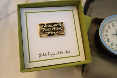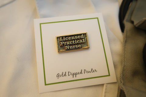 Every May, nurses are honored with a weeklong national celebration. Nurses Week, which is always May 6-12, honors nurses for the dedication, care, and skill they demonstrate every day. Recognize your licensed practical nurses with our pin made especially for them. Hand cast in solid, lead-free pewter and then dipped in 22K gold, our LP nurse pins have a US made, military style clasp back that keeps the pin secure on a white coat, name badge, or lanyard, and helps them showcase their credentials. All of our nursing pins arrive packaged on our signature presentation cards, making them ready for gift-giving!
