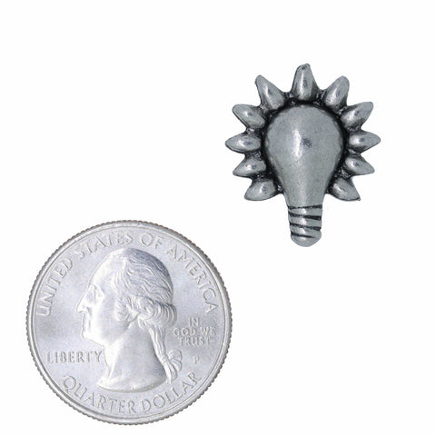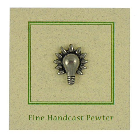 Show you’re an innovator with our lightbulb pin. Hand cast in solid, lead-free pewter, our bright idea pins have a US made, military style clasp back to keep your pin secure on a coat, tie, or hat. Our light pins arrive packaged on our signature presentation cards, making them ready for gift-giving! Hosting an inventor’s night, innovation convention, or science fair? Our custom card option allows you to design the front of the card to include a logo, information about your event, or a special message.