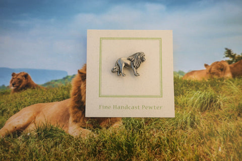 Go wild with our lion pins.  Hand cast in solid, lead free pewter in our studio in RI.  Fundraise for wildlife conservation efforts, use as donor recognition for zoos, or wear your favorite wildlife pin on your lapel.  Our lion pin is a three-dimensional sculpture signed by the artist, Jim Clift. The big cats arrive packaged on our signature presentation cards, making them ready for gift-giving!  Choose our custom card option to include a logo, special message, or information for donors or fundraising campaigns.  We have a large collection of animal pins, collect them all!