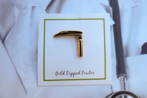 The miller blade laryngoscope is a medical instrument commonly used by Ear, Nose, and Throat doctors. In order to view your larynx, ENT doctors will place this viewing instrument into your mouth to view your throat. The miller blade is the most common used laryngoscope and is often used in pediatrics as it is the easiest for viewing the vocal chords. Recognize these healthcare professionals with a hand cast pewter gold dipped laryngoscopy pin to wear on their lab coat, name badge, or lanyard in their specific field. All our medical pins come on our signature presentation card, making them ready for gift-giving! Design your own custom card with your hospital logo, practice information, or special message to pass out to patients, at conventions, or to acknowledge the hard work of ENT specialists.