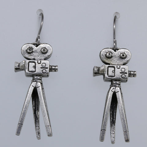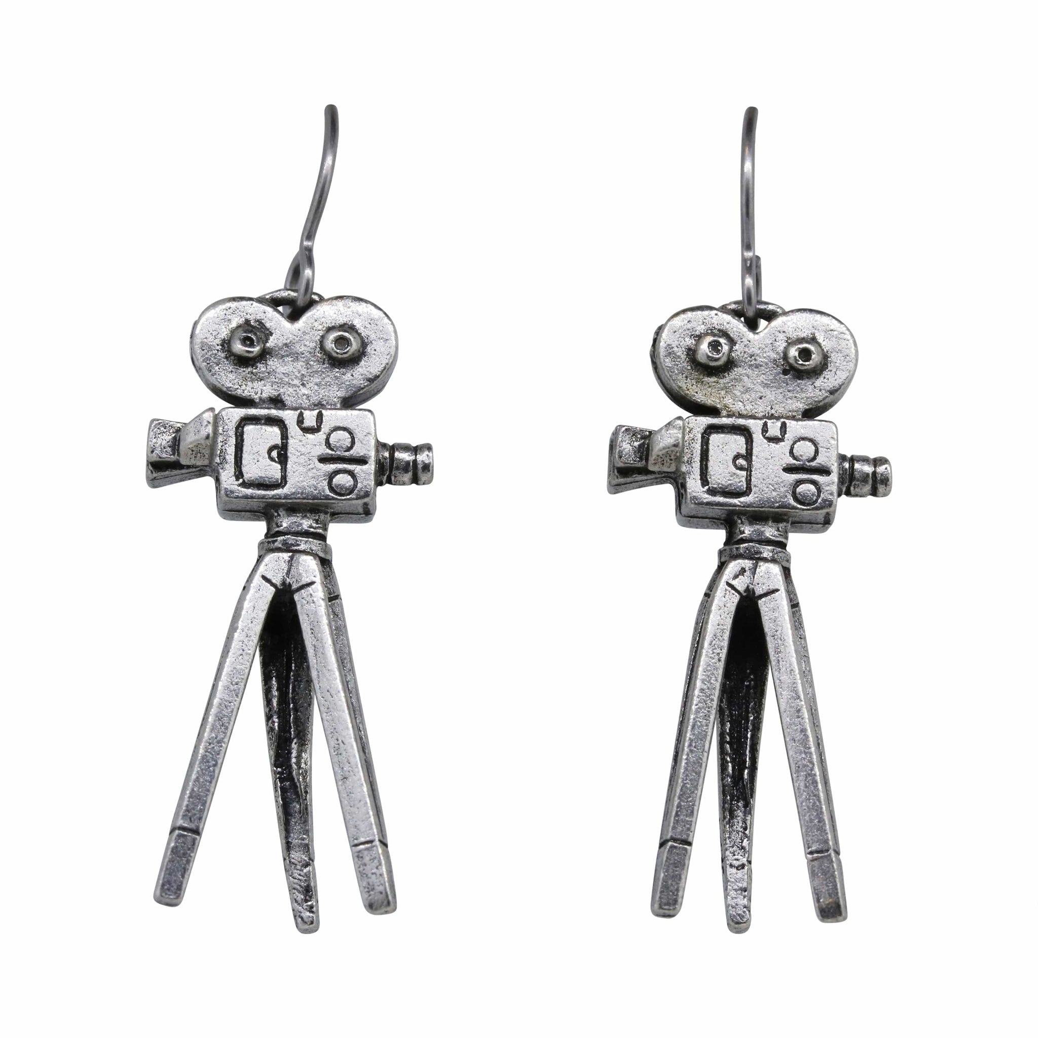 Our movie camera earrings are hand cast in solid, lead-free pewter. They have stainless steel ear wires that are very corrosion resistant, clean, hypoallergenic and sturdy (also with a sleek, shimmering finish that won’t rust or tarnish). The motion picture dangles arrive packaged on our signature presentation card, nestled inside a beautiful gift box, making them ready for gift-giving!