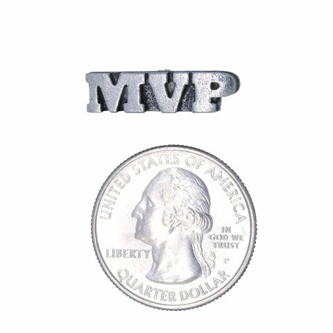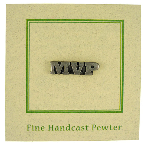 Recognize your most valuable player or person with our MVP pin. Hand cast in solid, lead-free pewter, our recognition pins have a US made, military-style clasp back to keep your pin secure on a coat, hat, or bag. Our motivational pins arrive packaged on our signature presentation cards, making them ready for gift-giving! Hosting an awards night, superlatives, or employee recognition event? Our custom card option allows you to design the front of the card to include a logo, information about your event, or a special message.