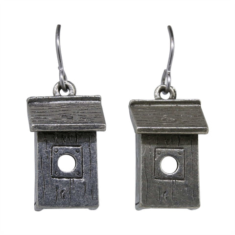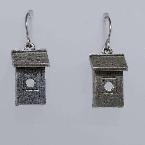 Our nest box earrings are hand cast in solid, lead-free pewter. They have stainless steel ear wires that are very corrosion resistant, clean, hypoallergenic and sturdy (also with a sleek, shimmering finish that won’t rust or tarnish). The birdhouse dangles arrive packaged on our signature presentation card, nestled inside a beautiful gift box, making them ready for gift-giving!