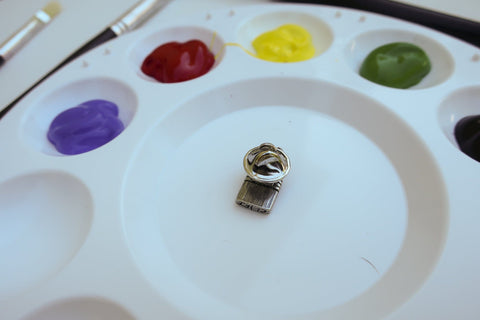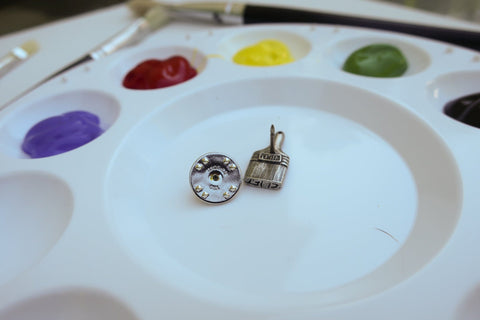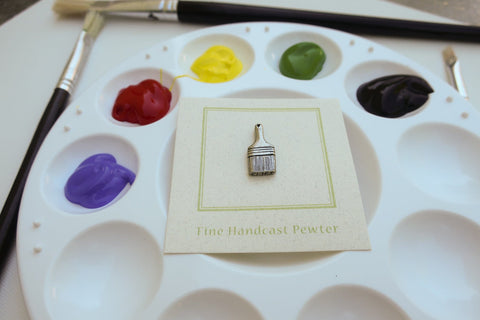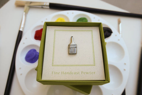 Show your love for DIY, renovations, and home improvement with our paintbrush pin. Hand cast in solid, lead-free pewter all paint pins have a US made, military style clasp backing that keeps it secure on a smock, coat, hat, or lanyard. The painting pins arrive packaged on our signature presentation card, making them ready for gift-giving!