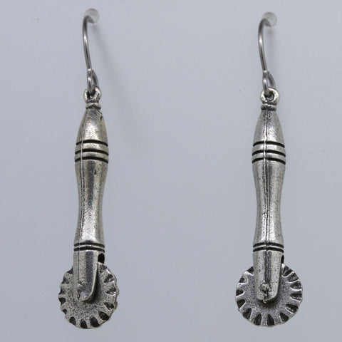 Our pastry crimper earrings are hand cast in solid, lead-free pewter. They have stainless steel ear wires that are very corrosion resistant, clean, hypoallergenic and sturdy (also with a sleek, shimmering finish that won’t rust or tarnish). The baking dangles arrive packaged on our signature presentation card, nestled inside a beautiful gift box, making them ready for gift-giving!