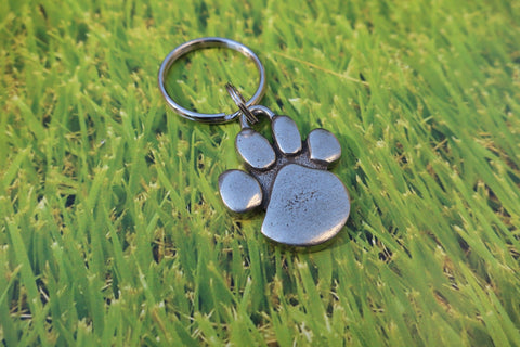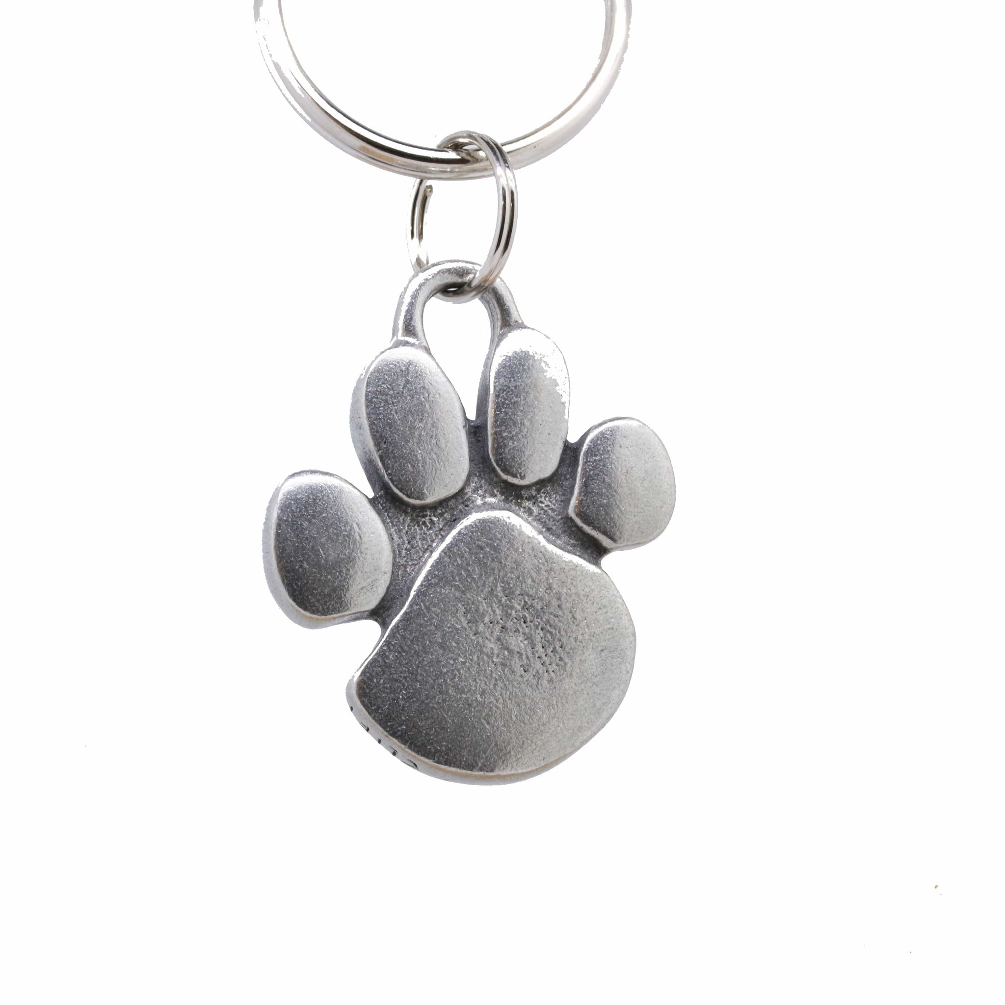 Add some flair or personalization to your set of keys with our hand cast pewter paw print key chain. Our pet keyring hangs beautifully from a ring. The perfect gift or accessory for pet owners to tell their story.