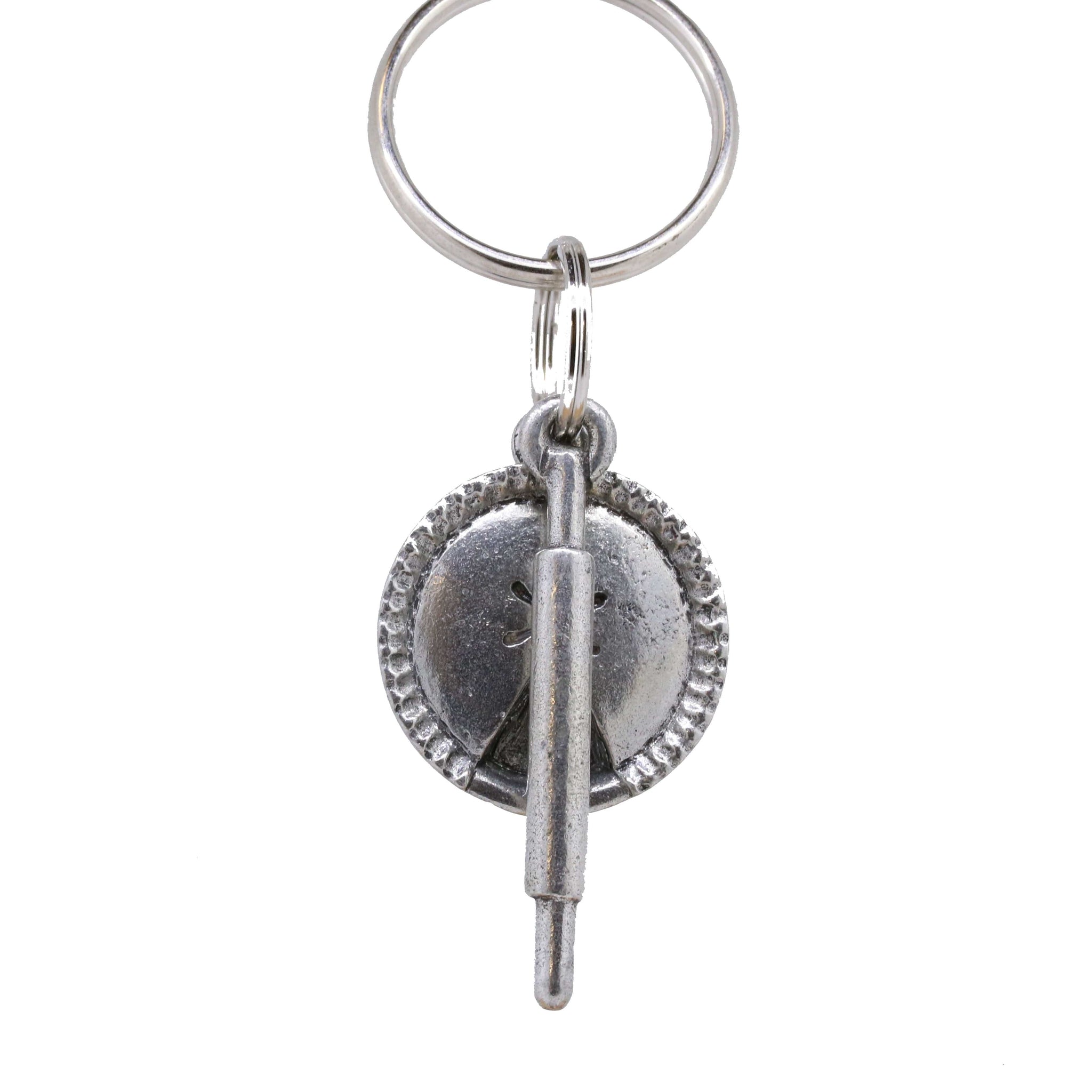 Add some flair or personalization to your set of keys with our hand cast pewter pie and rolling pin key chain. Our dessert keyrings hang beautifully from a ring. The perfect gift or accessory for baking enthusiasts to tell their story.