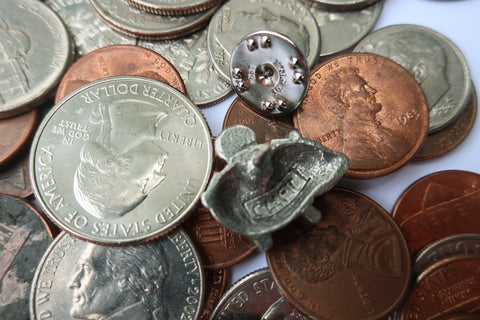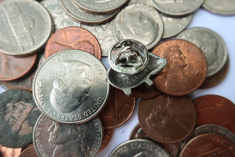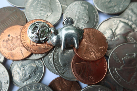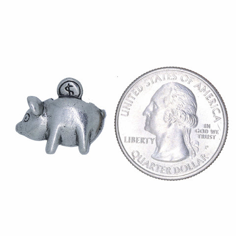 Stress the importance of saving with our piggy bank pin. Hand cast in solid, lead-free pewter, our money pins have a US made, military style clasp back to keep your pin secure on a coat, hat, or bag. Our investment pins arrive packaged on our signature presentation cards, making them ready for gift-giving! Hosting a college savings event, financial advisor convention, or recognizing bank employees? Our custom card option allows you to design the front of the card to include a logo, information about your event, or a special message.