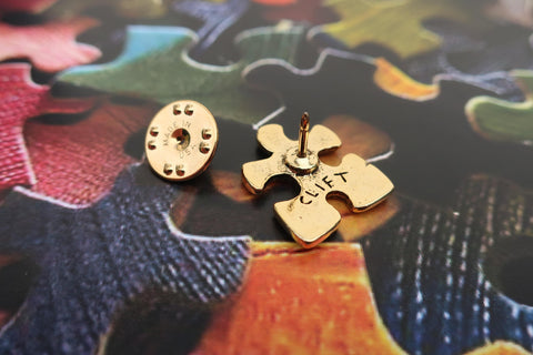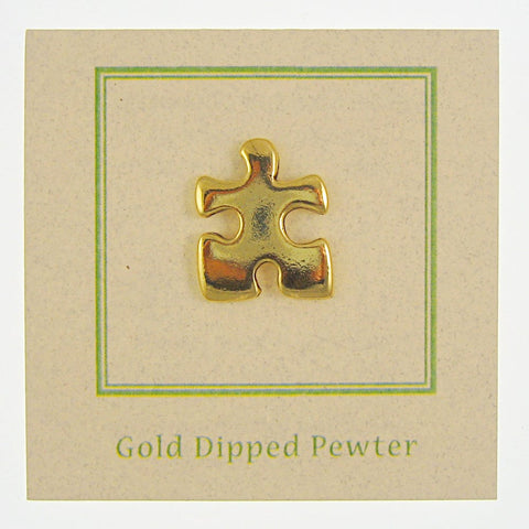 Each individual is an essential piece to the larger picture. Symbolize teamwork and collaboration with our puzzle piece pin. Hand cast in solid, lead-free pewter and then dipped in 22K gold, our jigsaw puzzle pin has a US made, military style clasp back to keep your pin secure on a coat, hat, or bag. Our puzzle pins arrive packaged on our signature presentation cards, making them ready for gift-giving! Hosting a teamwork building workshop, leadership meeting, or school collaboration? Our custom card option allows you to design the front of the card to include a logo, information about your event, or a special message.
