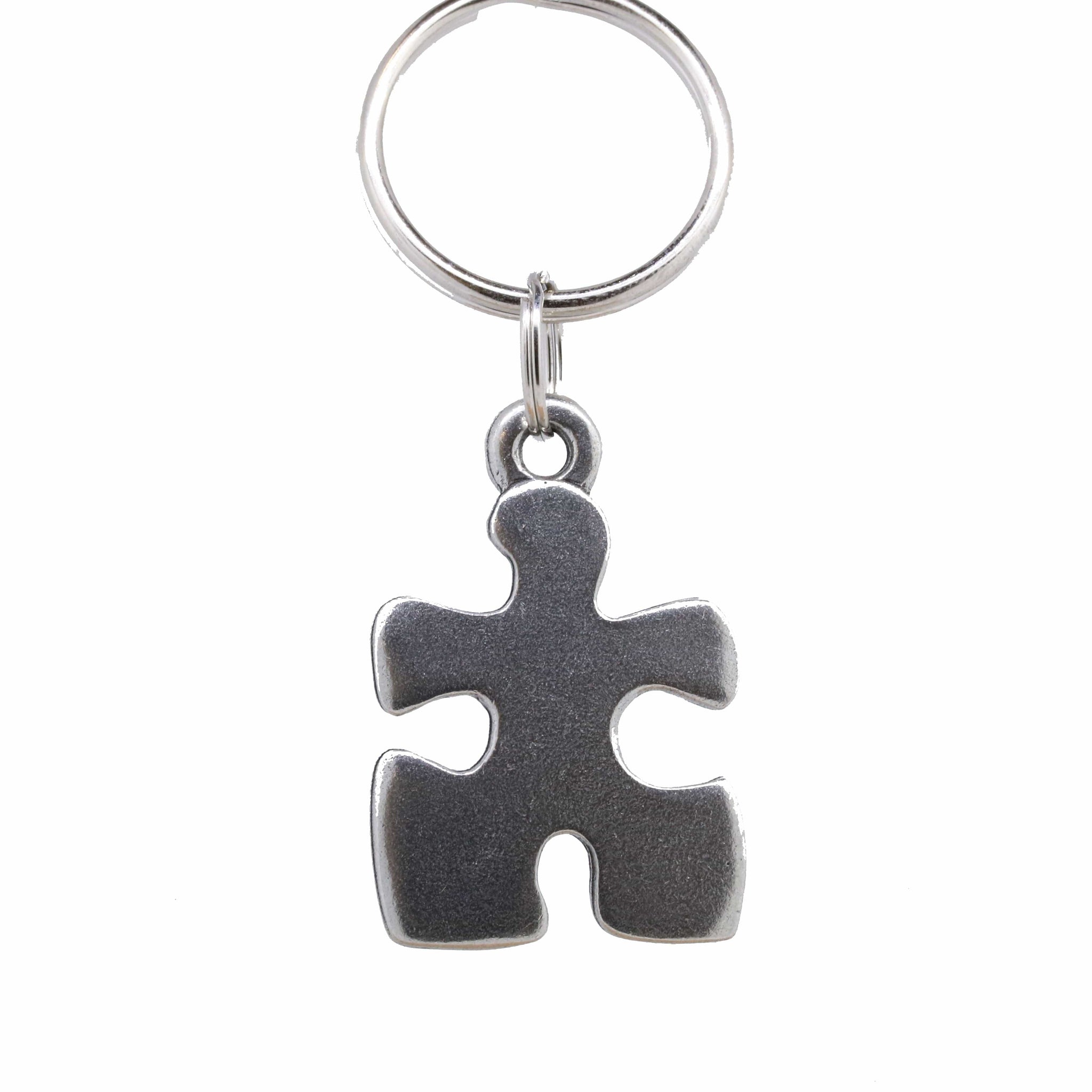 Add some flair or personalization to your set of keys with our hand cast pewter puzzle piece key chain. Our jigsaw puzzle keyring hangs beautifully from a ring. The perfect gift or accessory to symbolize that each individual is an essential piece to the larger picture. Celebrate teamwork and collaboration with our puzzle piece keychain.